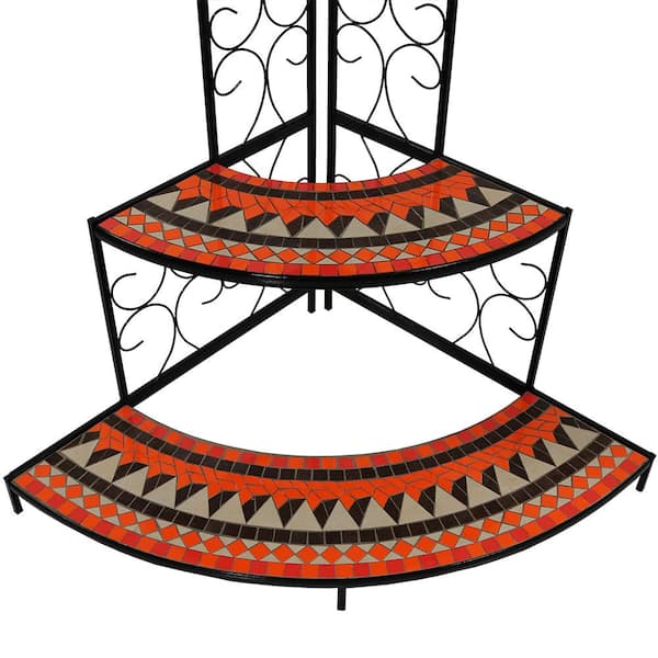 Sunnydaze Decor 40 In Mosaic Tiled Steel Corner Plant Stand Shelf Kf 3mts Mc The Home Depot